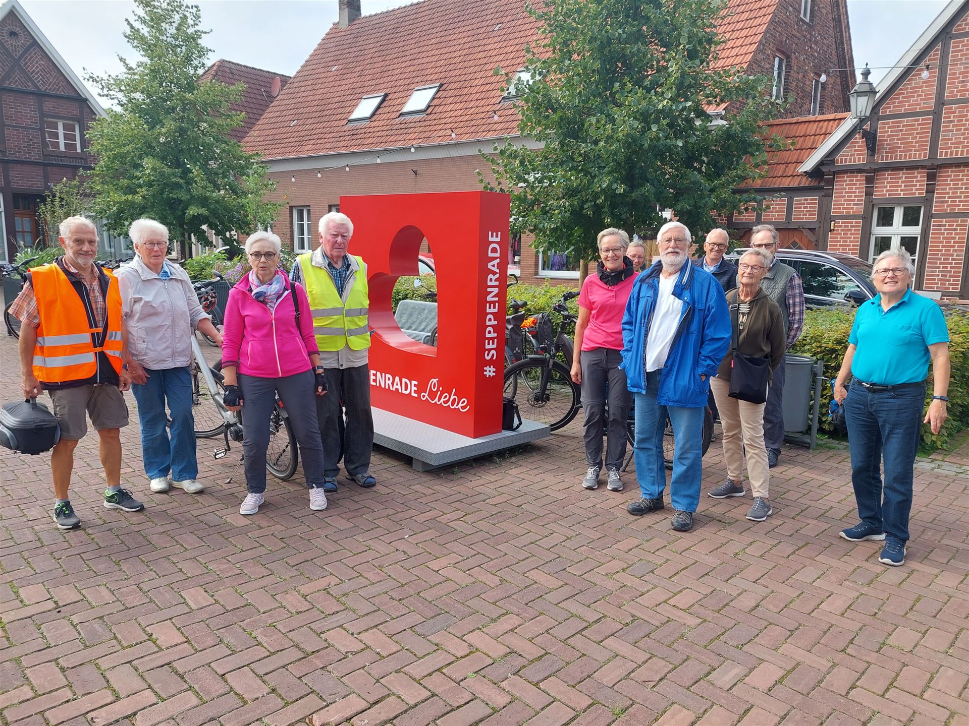 14 Senioren starteten am Marktplatz in Lüdinghausen zur Radtour durch die Bauernschaften rund um Seppenrade, mit Einkehr zum Kaffee in der Bäckerei Holtermann.