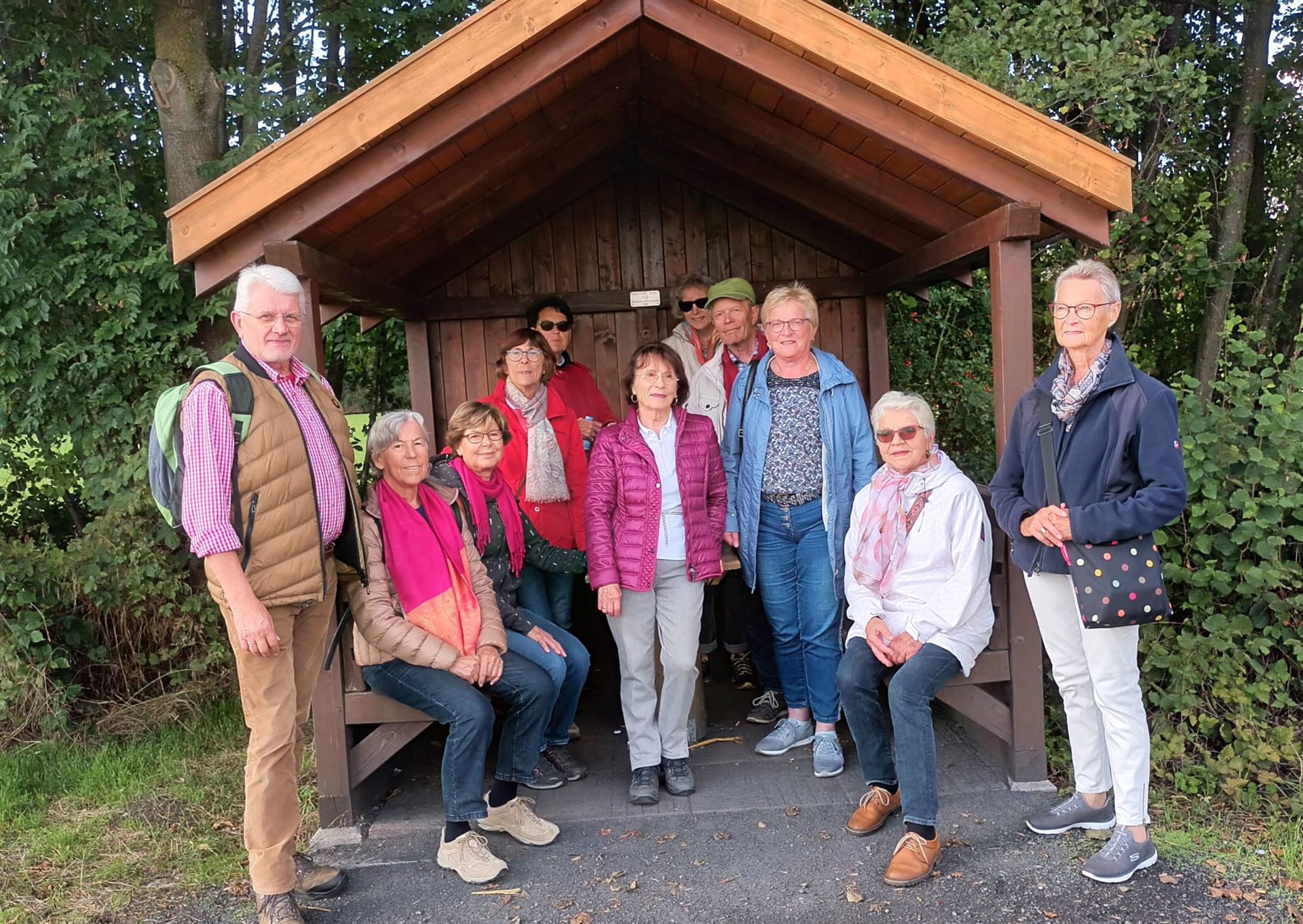 27 Wanderer trafen sich am Kirchplatz in Seppenrade. Von dort aus ging es vorbei an der Wolfsschlucht in die Seppenrader Schweiz. Nach ungefähr 6 Kilometer Wanderstrecke kehrte die Gruppe im Cafe Holtermann ein.